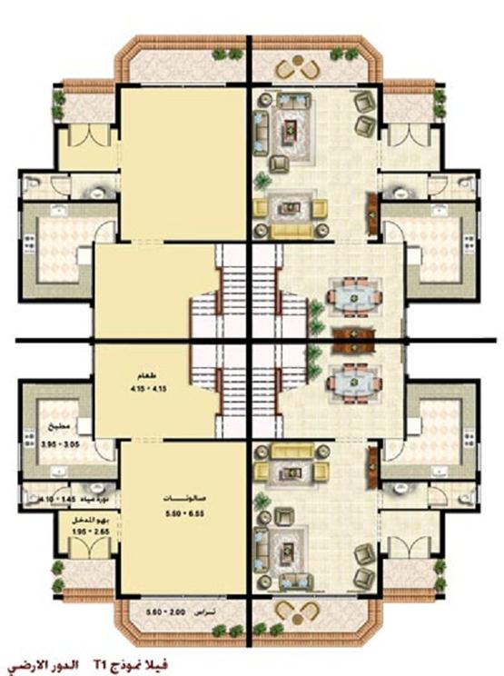 للبيع بالـتقسيط بالرحاب فيلا نموذج T1 مساحة الأرض 277 م² مساحة المبانى 221 م² تشطيب الشركة تطل على حديقة , شارع